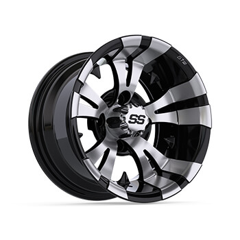 If you want to turn heads, install the GTW Vampire Machined Black Wheels from Buggies Unlimited, it's simpler than basic math from grade school. The neighbors have been bringing the heat lately, and if you want to continue to be the talk of the alley, you need to step up your game. There are all kinds of tricks and gimmicks available for caddies these days. Why not go with something more solid, like a set of rims? We don't joke around when it comes to style.When you are getting down to the nitty-gritty, it's all about the deal. Sure, you could find this set at your local dealer, but at minimum, the golf cart parts alone are going to be 20-40 percent more expensive. Then they are going to nail you for shop fees and anything else they can tack on. Here at Buggies Unlimited, you can get a set of Vampire wheels for the lowest cost around, and there are no hidden fees. Getting what you need for your caddie shipped right to your door makes upgrades like this easy.Installing these aftermarket wheels is something we would be happy to do for you. There is no need to take them to a local shop if you buy tires simultaneously. Instead, we will mount them up for free before sticking them in the box. Then, all you will have to do is put them on your cart. Now that is a deal you can sink your teeth into.When you need parts for your golf cart, Buggies Unlimited will answer the call. Reach out to us now for anything you may need. Upgrades like these GTW Vampire machined black wheels are not the only things we delve into. Get all the hard parts you need to keep them running right here too.